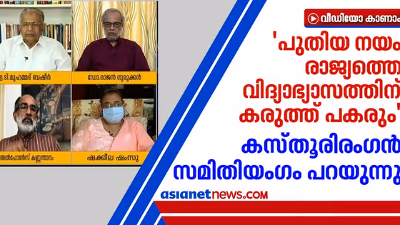 കസ്തൂരി രംഗന് കമ്മിറ്റിയുടെ മാത്രം ശുപാര്ശയിലല്ല പുതിയ വിദ്യാഭ്യാസനയം രൂപപ്പെടുത്തിയതെന്നും എല്ലാ സംസ്ഥാനങ്ങളുമായും എംപിമാരുമായും അടക്കം ചര്ച്ച ചെയ്തിട്ടുണ്ടെന്നും കസ്തൂരി രംഗന് സമിതിയംഗം ഡോ.ഷക്കീല ഷംസു. പൊതുവിദ്യാഭ്യാസത്തിന് കരുത്തു പകരാനുള്ള നിര്ദ്ദേശമാണ് നല്കിയിട്ടുള്ളതെന്നും രാജ്യത്തെ വിദ്യാഭ്യാസത്തിന്റെ നിലവാരമുയരുമെന്നും ഏഷ്യാനെറ്റ് ന്യൂസ് പ്രത്യേക ചര്ച്ചയില് അവര് പറഞ്ഞു.