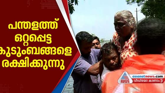 പന്തളം പൂഴിക്കാട് വെള്ളം കയറി; ഒറ്റപ്പെട്ട കുടുംബങ്ങളെ രക്ഷപ്പെടുത്തുന്നു