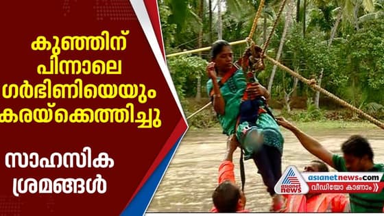 കുത്തൊഴുക്ക് കൂടിയ ഭവാനിപ്പുഴയ്ക്ക് കുറുകെ കെട്ടിയ വടത്തിലൂടെ ഗര്ഭിണിയെ കരയ്ക്കെത്തിച്ചു