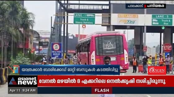 പന്നിയങ്കര ടോൾ പ്ലാസയിൽ പ്രതിഷേധം, ടോളിനായി തടഞ്ഞിട്ട ബസുകൾ ബാരിക്കേഡുകൾ മാറ്റി യാത്രക്കാർ കടത്തിവിട്ടു