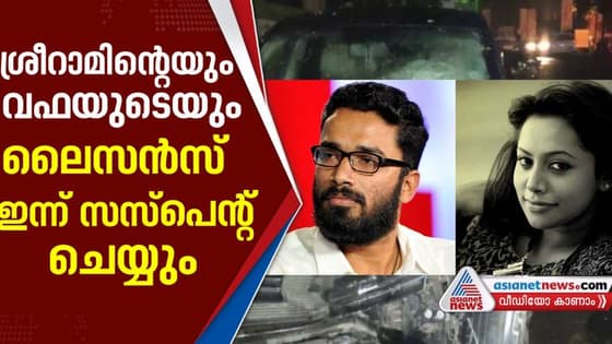 ശ്രീറാം വെങ്കിട്ടരാമന്റെയും വഫ ഫിറോസിന്റെയും ലൈസൻസ് ഇന്ന് സസ്പെന്റ് ചെയ്യും