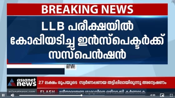 എൽഎൽബി പരീക്ഷയിൽ (LLB Exam) കോപ്പിയടിച്ച ഇൻസ്പെക്ടർക്ക് സസ്പെൻഷൻ. പൊലീസ് ട്രെയിനിംഗ് കോളേജിലെ (Police Training College) ഇൻസ്പെക്ടർ ആദർശിനെയാണ് സസ്പെൻഡ് ചെയ്തത്. എൽഎൽബി പരീക്ഷയിലാണ് ആദർശ് കോപ്പിയടിച്ചത്. പരീക്ഷ പുരോഗമിക്കുന്നതിനിടെ ക്ലാസിലെത്തി സ്ക്വാഡാണ് ആദർശിനെ പൊക്കിയത്. ഉദ്യോഗസ്ഥൻ കോപ്പയിടിക്കിടെ പിടിയിലായത് പൊലീസ് ട്രെയിനിംഗ് കോളേജിൻ്റെ സൽപ്പേര് കളങ്കപ്പെടുത്താൻ കാരണമായെന്ന് ആദർശിനെ സസ്പെൻഡ് ചെയ്തുള്ള ഉത്തരവിൽ എഡിജിപി(ADGP) ചൂണ്ടിക്കാട്ടുന്നു. നടപടി നേരിട്ട ഉദ്യോഗസ്ഥനെ ട്രെയിനിംഗ് കോളേജിൽ നിന്നും മാറ്റാനും നിർദേശിച്ചിട്ടുണ്ട്.