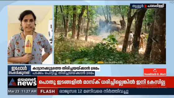 തൃശൂർ പാലപ്പിള്ളിയിൽ കാട് കയറാതെ കാട്ടാനക്കൂട്ടം. ജനവാസ കേന്ദ്രത്തിലുമിറങ്ങിയതോടെ പടക്കം പൊട്ടിച്ച് തിരിച്ചയയ്ക്കാൻ ശ്രമം