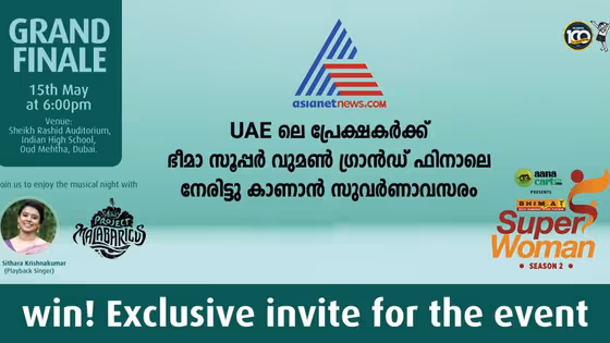 പ്രശസ്ത ഗായിക സിത്താര അവതരിപ്പിക്കുന്ന സംഗീത പരിപാടി നേരിൽ കണ്ടാസ്വദിക്കാം. https://bit.ly/3M1nxMI ലിങ്കിൽ നിങ്ങളുടെ വിവരങ്ങൾ നൽകൂ. ദുബായിൽ നടക്കുന്ന ഭീമാ സൂപ്പർ വുമൺ ഗ്രാൻഡ് ഫിനാലെ കാണാനുള്ള എക്സ്ക്ലൂസീവ് ഇൻവൈറ്റ് സൗജന്യമായി നേടൂ.