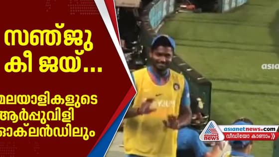 ഇന്ത്യ-ന്യൂസിലന്ഡ് ടി20 പരമ്പരയിലെ ആദ്യ മത്സരം ഓക്ലന്ഡില് നടക്കുന്നതിനിടെ മലയാളി താരം സഞ്ജു സാസണുവേണ്ടി ആര്പ്പുവിളിച്ച് മലയാളികള്. ഇന്ത്യന് ബാറ്റിംഗിനിടെ ബൗണ്ടറി ലൈനിന് അരികിലൂടെ നടന്ന് ഡഗ് ഔട്ടിലേക്ക് എത്തിയ സഞ്ജുവിനെ സ്റ്റേഡിയത്തിലിരുന്ന് കാണികള് ഉറക്കെ വിളിച്ചു, സഞ്ജു...സഞ്ജു.. സഞ്ജു ഞങ്ങളുടെ മുത്താണ് എന്നും ആരാധകര് ഉറക്കെ വിളിച്ചു പറയുന്നുണ്ടായിരുന്നു. ഇതെല്ലാം കേട്ട് ബാറ്റിംഗിന് തയാറായി ക്യാപ്റ്റന് വിരാട് കോലിയും സമീപത്ത് ഇരിക്കുന്നുണ്ടായിരുന്നു. കാണികളെ ഒരു ചെറു ചിരിയോടെ തിരിച്ച് അഭിവാദ്യം ചെയ്ത സഞ്ജു അവരെ വിലക്കുന്നതും ദൃശ്യങ്ങളില് കാണാമായിരുന്നു.
