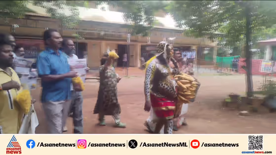 ഓണത്തിൻ്റെ വരവ് അറിയിച്ച് തൃശൂരിൽ പുലിയിറങ്ങി, അയ്യന്തോളിലെ സ്കൂളിലെത്തിയത് വാഴക്കുലയുമായി, സമ്മാനം കിട്ടിയ സന്തോഷത്തിൽ കുട്ടികൾ