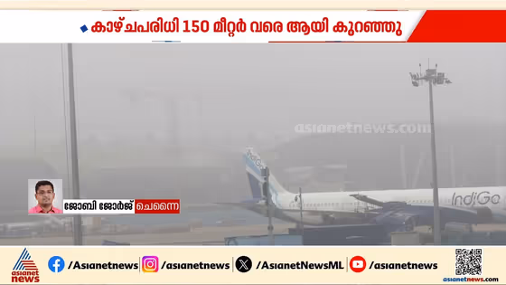 കനത്ത മൂടൽ മഞ്ഞിനെ തുടർന്ന് ചെന്നൈയിൽ വിമാനങ്ങൾ വൈകുന്നു; 5 വിമാനങ്ങൾ വഴി തിരിച്ചുവിട്ടു, കാഴ്ചപരിധി 150 മീറ്റർ വരെ ആയി കുറഞ്ഞു Heavy fog | Flights delayed | Chennai airport