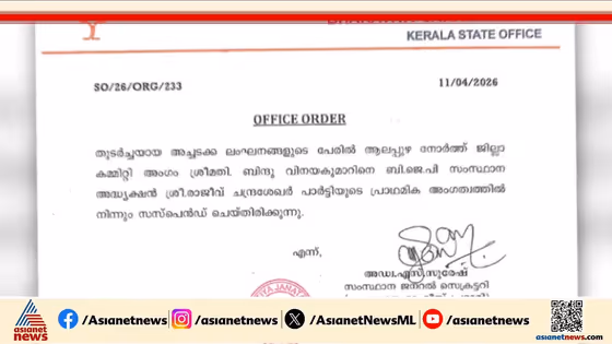 ശോഭാ സുരേന്ദ്രനെതിരെ പരാതി നൽകിയതിന് പിന്നാലെ, ആലപ്പുഴ ബിജെപി വനിത നേതാവ് ബിന്ദുവിന് സസ്പെൻഷൻ; നടപടി സംഘടനാ വിരുദ്ധ പ്രവര്ത്തനം നടത്തിയെന്ന പേരിൽ