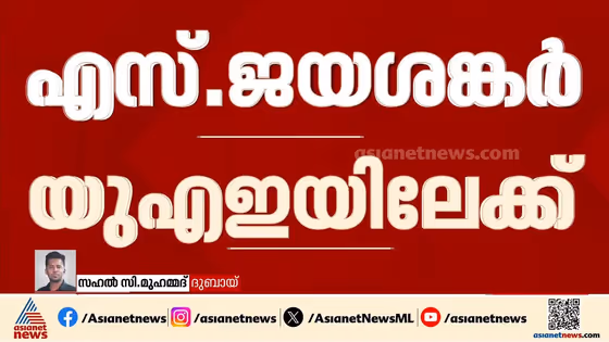 ഇന്ത്യ - യുഎഇ ബന്ധം പ്രധാന ചർച്ച; വിദേശകാര്യ മന്ത്രി എസ് ജയശങ്കർ രണ്ട് ദിവസത്തെ സന്ദർശനത്തിനായി യുഎഇയിലേക്ക് , മേഖലയിലെ സാഹചര്യം ചർച്ചയാകും