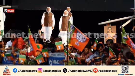 പ്രധാനമന്ത്രി നരേന്ദ്ര മോദി തൃശ്ശൂരിൽ; കുട്ടനെല്ലൂരിൽ ഹെലികോപ്റ്ററിൽ ഇറങ്ങി; കാർ മാർഗം സ്വരാജ് റൗണ്ടിലേക്ക് എത്തും; NDA സ്ഥാനാർഥികൾക്കൊപ്പം റോഡ് ഷോയിൽ പങ്കെടുക്കും