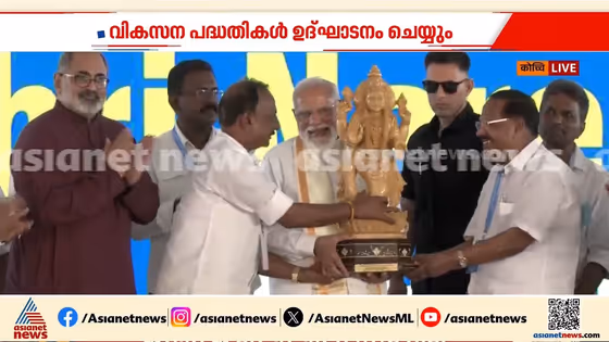 കൊച്ചിയിൽ നടക്കുന്ന ധീവര സഭയുടെ സുവര്ണ ജൂബിലി സമ്മേളനത്തിൽ പ്രധാനമന്ത്രി നരേന്ദ്ര മോദി; പരമ്പരാഗത മത്സ്യത്തൊഴിലാളികളുടെ ഭാഗമായി മഹവിഷ്ണുവിന്റെ ആദ്യ അവതാരമയ മത്സ്യ വിഗ്രഹം നരേന്ദ്ര മോദിക്ക് സമ്മാനിച്ചു