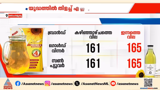 യുദ്ധത്തിൽ തിളച്ച് എണ്ണ വില; സൺഫ്ലവർ ഓയിലിന് ഒരാഴ്ചയ്ക്കകം കൂടിയത് 5 രൂപ വരെ, റൈസ് ബ്രാൻ ഓയിൽ, മിശ്രിത എണ്ണകൾക്ക് ലിറ്ററിന് കൂടിയത് 10 രൂപ വരെയും
