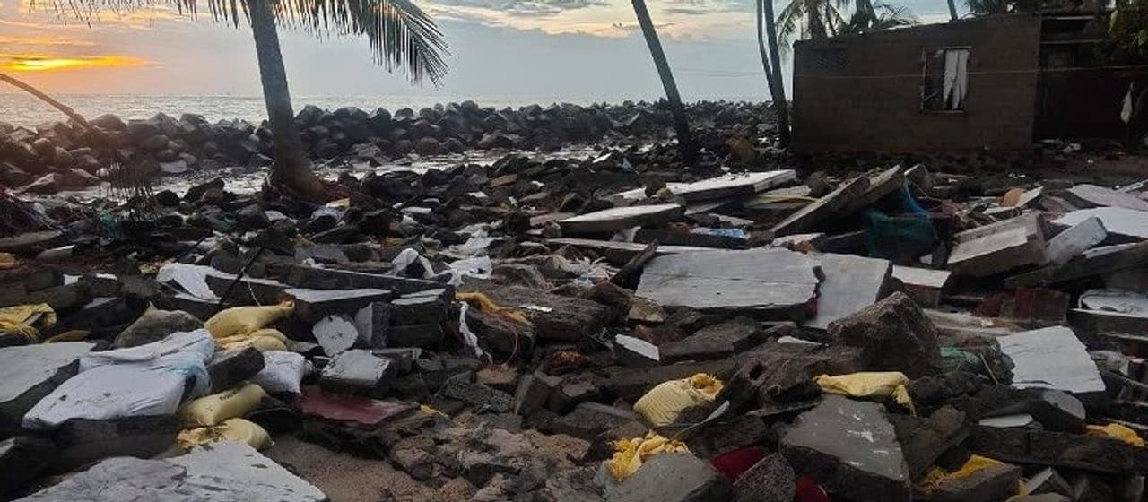 'എന്ത് പറയാനാണ്. എല്ലാം പോയില്ലേ? അവിടെ വീടില്ല ചേച്ചി. ഭാവിയില് കടലു കൊണ്ടുപോയാലും ഇല്ലെങ്കിലും ഇനി വീണ്ടും ഒന്നില് നിന്ന് തുടങ്ങണം. എവിടെയെങ്കിലും ഒരു വാടകവീട് തിരയണം. ജീവിക്കണം. അത്രയെ ഉള്ളു.'