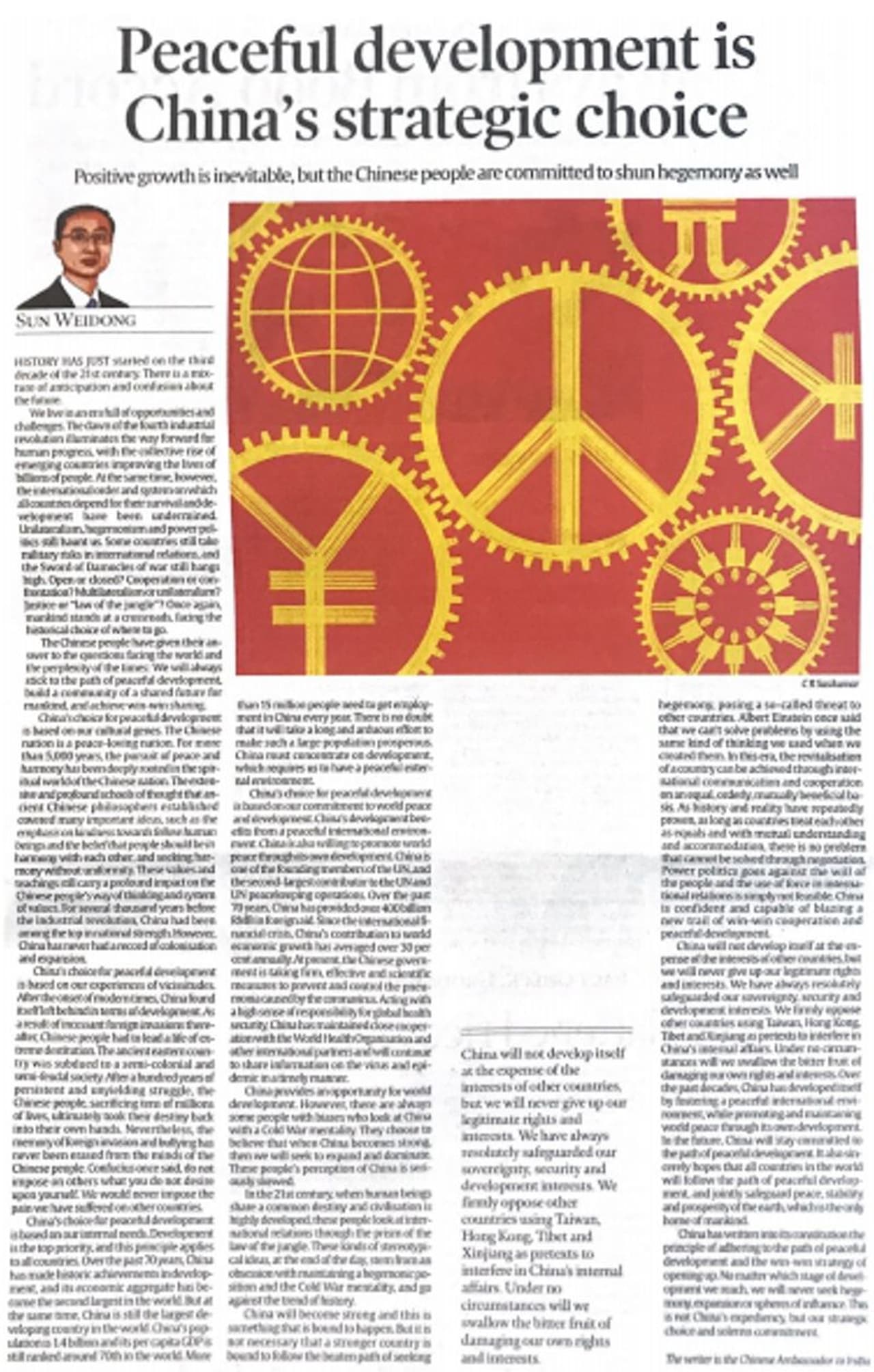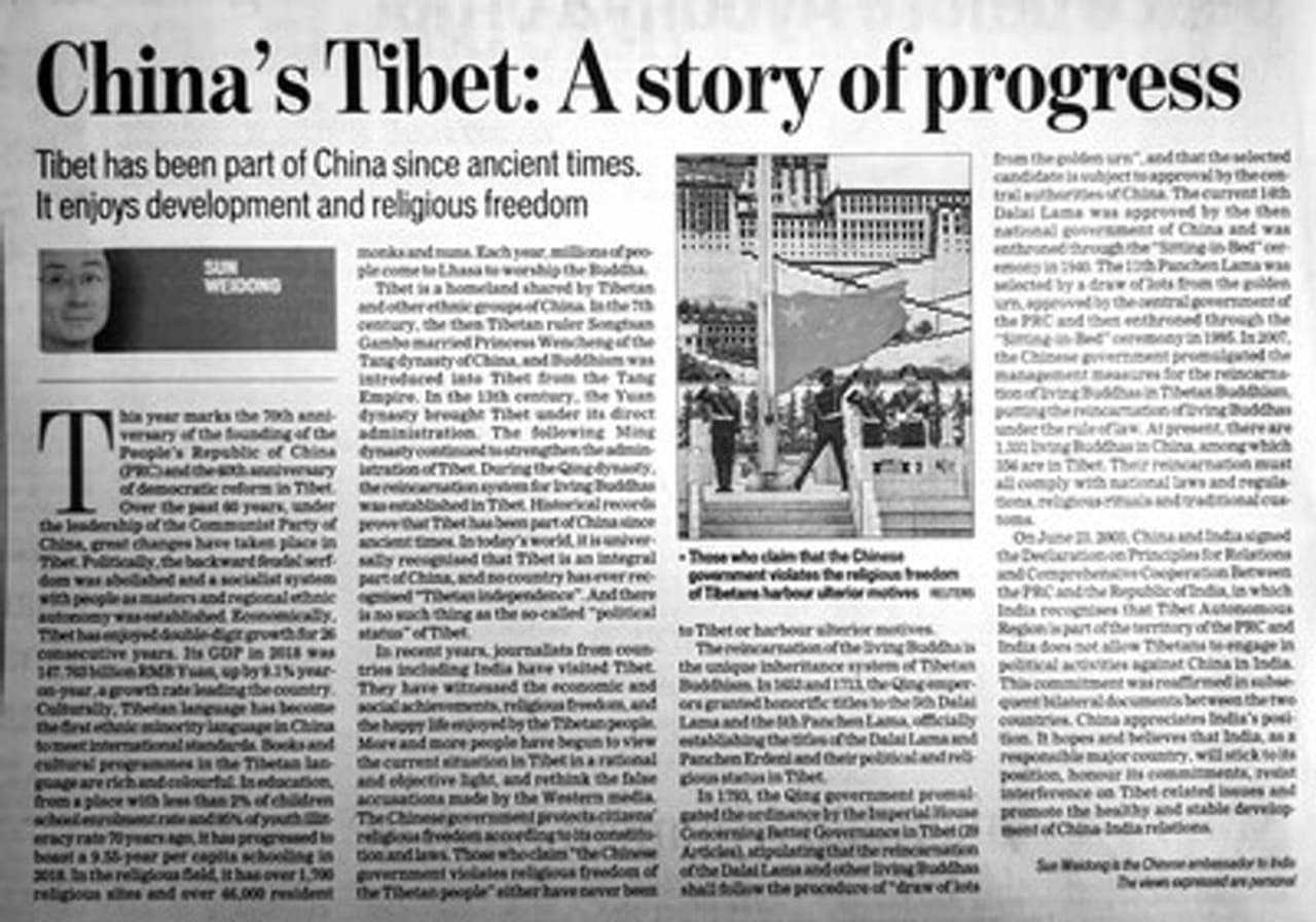 എന്നാല് ഈ ശബ്ദകോലാഹലങ്ങള്ക്കിടയില്, മറഞ്ഞു പോകുന്ന ഒന്നുണ്ട്. കഴിഞ്ഞ ഒരു വര്ഷത്തിനിടയില്, ചൈനീസ് സ്ഥാനപതിക്ക് അദ്ദേഹത്തിന്റെ സ്വന്തം രാജ്യത്തിന്റെ 'സത്യ ഭാഷ്യങ്ങള്' (versions of truth) പ്രസിദ്ധപ്പെടുത്താനായി ഇന്ത്യയിലെ മാധ്യമങ്ങള് - പ്രത്യേകിച്ച് ആംഗലേയ മാധ്യമങ്ങള് - അവരുടെ നിരൂപണ/ഓപ്-എഡ് കോളങ്ങളും/പേജുകളും, യഥേഷ്ടം നീക്കിവച്ചു എന്ന വസ്തുത. ചൈനീസ് സ്ഥാനപതിയുടെ ഈ 'ലേഖനങ്ങള്' വസ്തുതകളെയും സത്യങ്ങളെയും വളച്ചൊടിച്ചു തെറ്റായി അവതരിപ്പിക്കുകയോ അല്ലെങ്കില് തിരഞ്ഞെടുത്ത് അവതരിപ്പിക്കുകയോ ആണ് ചെയ്തിട്ടുള്ളത്.
