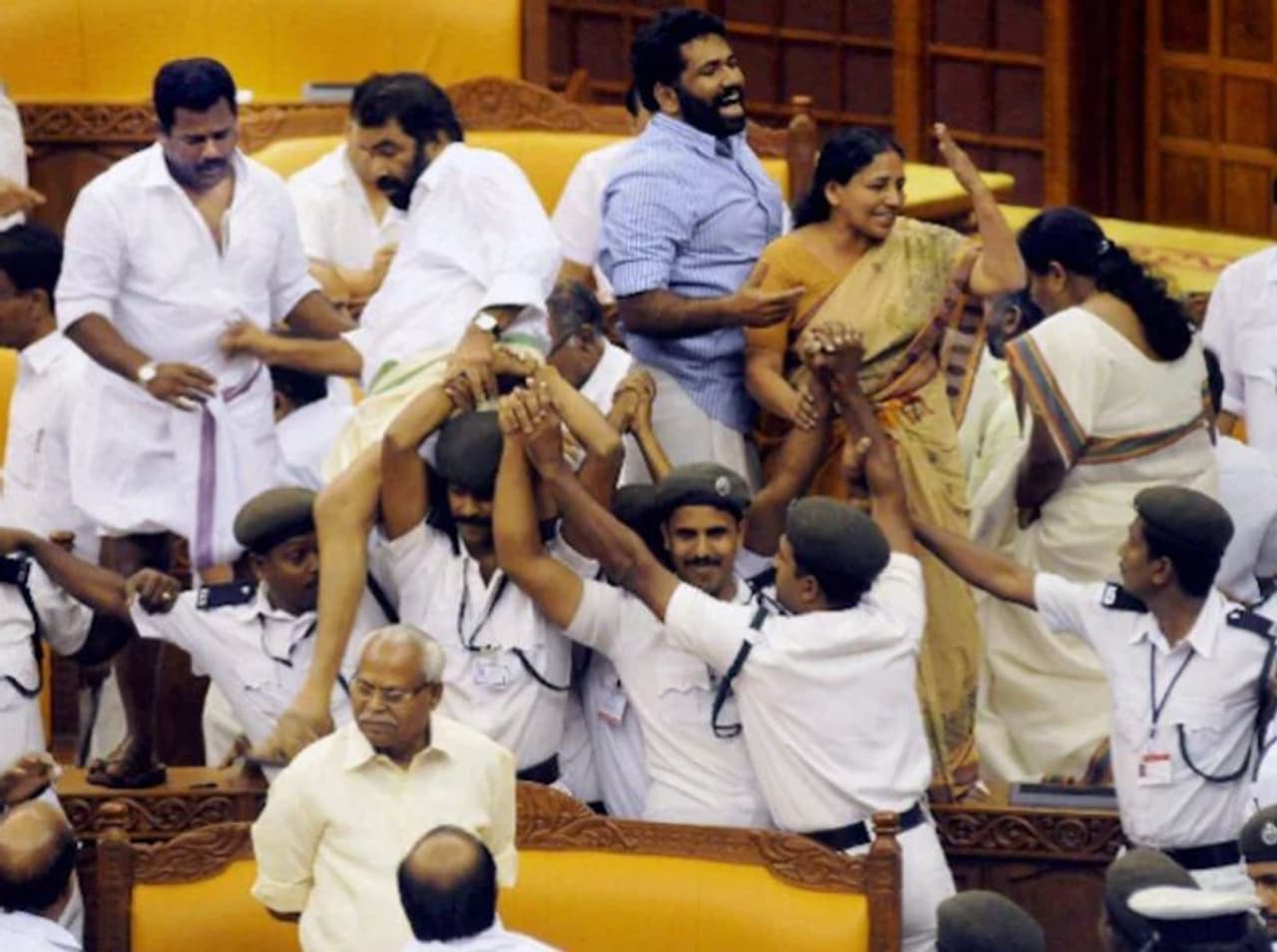 മാണിയെ ലക്ഷ്യമിട്ട ശിവന്കുട്ടി പിന്വാങ്ങിയില്ല. ഭരണപക്ഷം ലഡു ഉയര്ത്തിക്കാട്ടുമ്പോള് ശിവന്കുട്ടി യുഡിഎഫ് നിരയിലെ ബഞ്ചില് കയറി. മുണ്ട് മടത്ത് കുത്തി ബഞ്ചിന് മുകളിലൂടെ നടന്നു. കയ്യില് കിട്ടിയതൊക്കെ വലിച്ചെറിഞ്ഞു നടന്ന് നടന്ന് ഒടുവില് ബോധമറ്റ് ശിവന്കുട്ടി വീണു. പരാക്രമം സ്ട്രെച്ചറിലാണ് അവസാനിച്ചത്. നിയമസഭയില് നില തെറ്റിയ ശിവന്കുട്ടിക്ക് രാഷ്ട്രീയത്തിലും അടിതെറ്റി. പ്രായോഗിക രാഷ്ട്രീയത്തിലെ തന്ത്രശാലിയുടെ ഏറ്റവും വലിയ പിഴവായി അതിരു കടന്ന ആ ആവേശം. ശിവന്കുട്ടിയെ വട്ടം ചുറ്റി പിടിക്കാന് കാത്തിരുന്ന ബിജെപിയുടെ കൈവെള്ളയിലേക്ക് നേമം വച്ചു കൊടുക്കലായി മാറി ആ രാഷ്ട്രീയ അബദ്ധമെന്ന് ഒരു വര്ഷത്തിനു ശേഷം നടന്ന നിയമസഭാ തിരഞ്ഞെടുപ്പ് തെളിയിച്ചു.