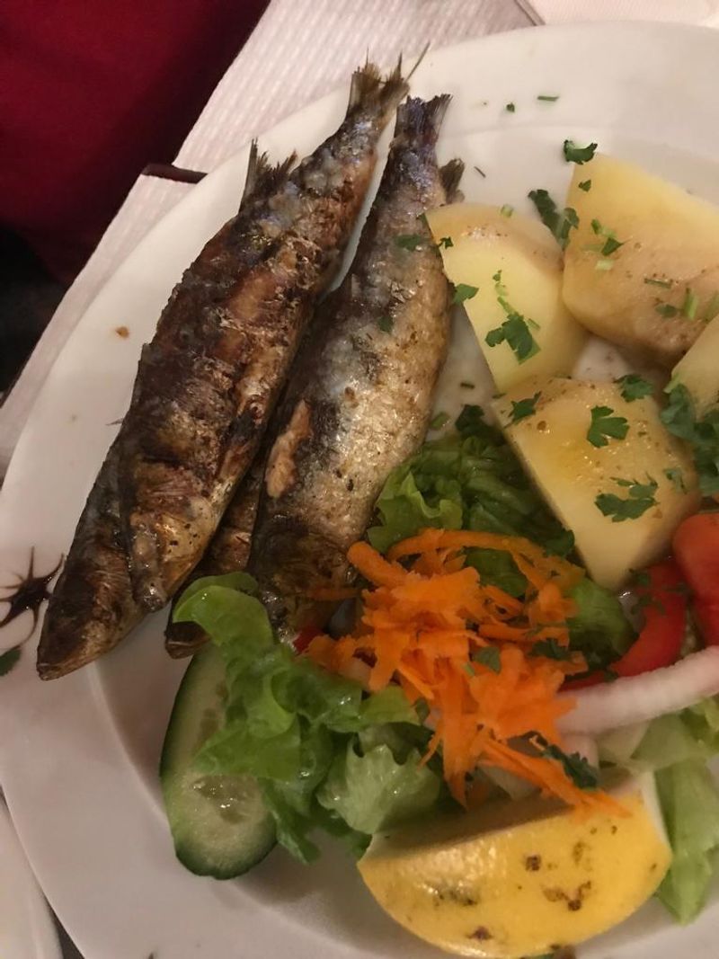 ബെലേം ടവർ സന്ദർശനത്തിന് ശേഷം പേസ്ട്രി കഴിക്കാനായി പ്രസിദ്ധമായ Pastéis de Belém കടയുടെ മുൻപിൽ ചെന്നപ്പോൾ തൃശൂർ പൂരത്തിന്റെ തിരക്ക്. പേസ്ട്രി കഴിക്കാൻ നിൽക്കുന്ന സായിപ്പന്മാരെ മനസ്സിൽ ശപിച്ചുകൊണ്ട് മുറുമുറുക്കുമ്പോഴാണ് കൂടെ യാത്ര ചെയ്ത ശ്രീജിത്തിന് ഒരു ഐഡിയ തോന്നിയത് നമുക്ക് എന്തുകൊണ്ട് പേസ്ട്രി കഴിപ്പ് വൈകുന്നേരത്തേക്കു മാറ്റിവെച്ചു കൂടാ. കക്ഷിയുടെ കൂടെ സ്കൂളിൽ പഠിച്ചിരുന്ന ഒരു ഗഡി ഇപ്പോൾ പോർച്ചുഗലിൽ ഷെഫ് ആണത്രേ. പുളളിക്കാരനോട് ചോദിച്ചാൽ നല്ല പോർച്ചുഗീസ് വിഭവങ്ങൾ കിട്ടുന്ന റെസ്റ്റോറന്റ് പറഞ്ഞുതരും. എങ്കിൽപ്പിന്നെ ഉച്ചഭക്ഷണം ആകട്ടെ അടുത്ത പരിപാടി എന്നുറപ്പിച്ചു നല്ല വിശപ്പുമായി ഞങ്ങൾ റെസ്റ്റോറെന്റിലേക്കു യാത്രയായി. അവിടെ ചെന്നപ്പോൾ അകെപ്പാടെ കൺഫ്യൂഷൻ ആയി. വിഭവങ്ങൾക്ക് യാതൊരു പരിചയവും ഇല്ലാത്ത പേരുകൾ. എന്നിരുന്നാലും മെനു കാർഡിലെ പടത്തിൽ നമ്മുടെ മത്തി ചുട്ട ഒരു ഐറ്റം കണ്ടപ്പോൾ ഇടം വലം നോക്കാതെ ഓർഡർ ചെയ്തു. സംഭവം കിടു ആണ്.