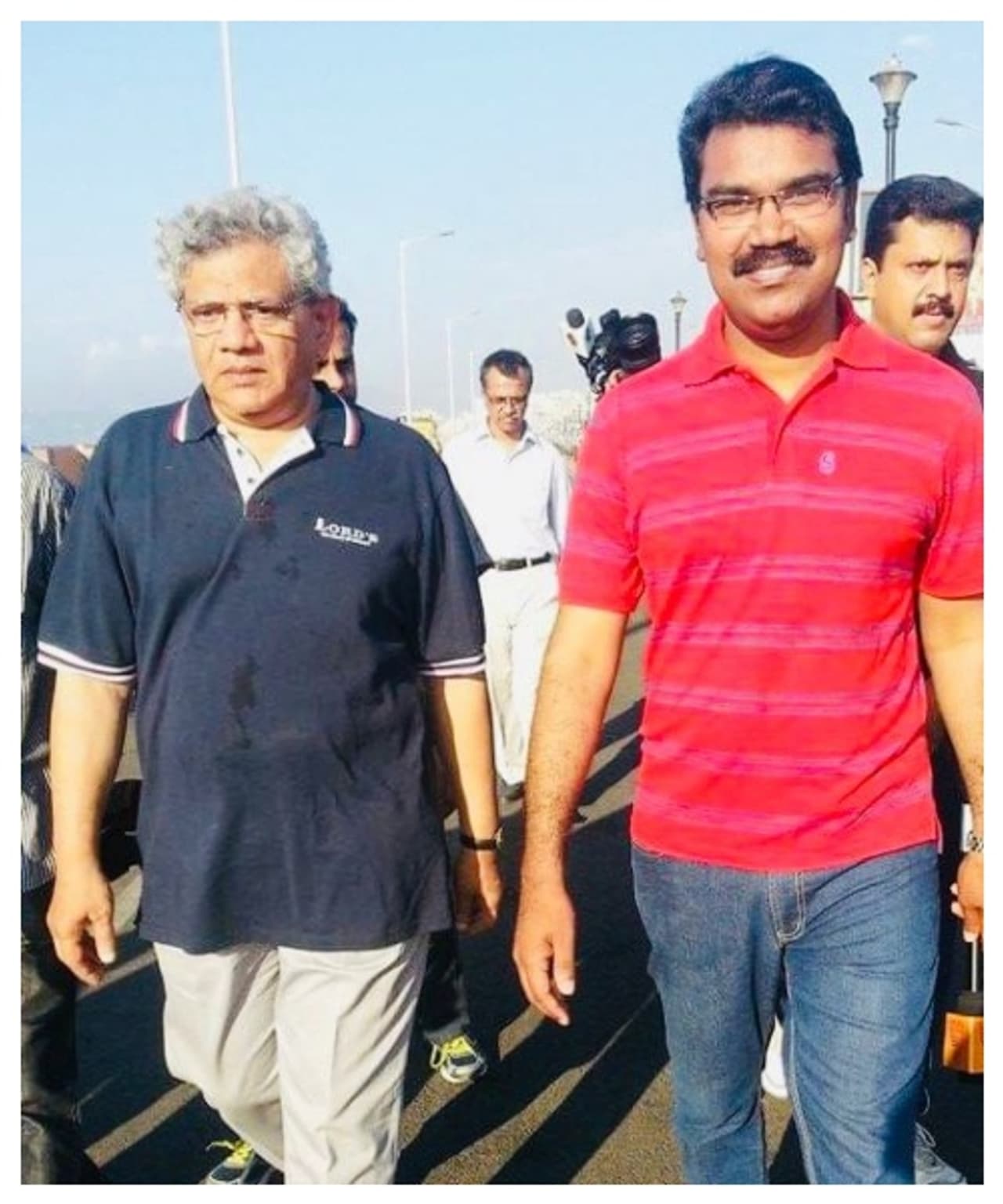 (ലേഖകനോടൊപ്പം സീതാറാം യെച്ചൂരി)