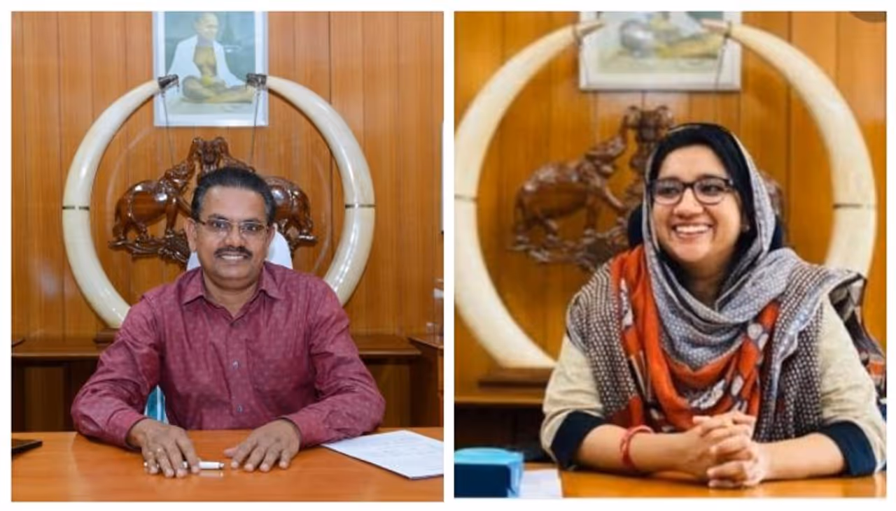 (കളക്ടറുടെ ചേംബറിലെ ആനക്കൊമ്പിന് മുന്നില് മുന് കളക്ടര് അജയകുമാറും മുന് കളക്ടര് അദീല അബ്ദുള്ളയും)