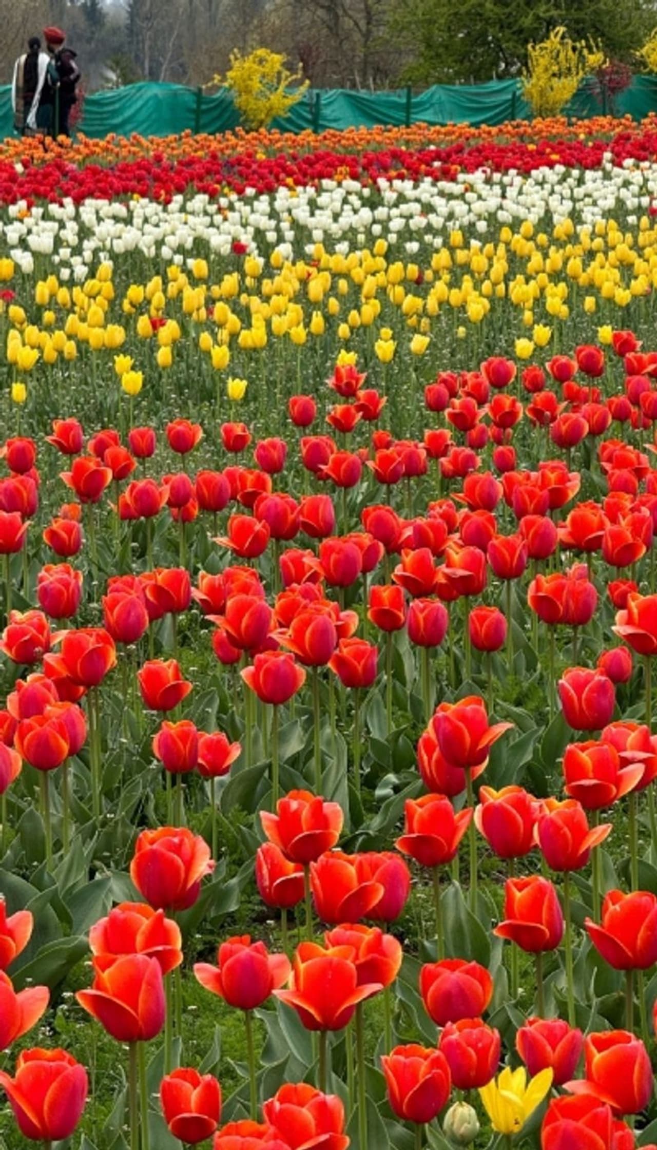 ശ്രീനഗറിലെ സബര്വന് മലയുടെ അടിവാരത്തില്, ലോകപ്രശസ്തമായ ദാല് തടാകത്തിന്റെ കരയിലാണ് ഏതാണ്ട് 30 ഏക്കറോളം വിസ്തൃതിയില് വ്യാപിച്ചു കിടക്കുന്ന, 'ഇന്ത്യയിലെ ഏക ട്യുലിപ് ഉദ്യാനം' എന്ന പദവി സ്വന്തമായുള്ള ഇന്ദിരാഗാന്ധി മെമ്മോറിയല് ട്യുലിപ് ഗാർഡന്. ഈ വർഷം മാർച്ച് 23 മുതൽ ഏപ്രിൽ 20 വരെ മാത്രമാണ് ഈ വസന്തോത്സവത്തിന്റെ ദൈർഘ്യം. തട്ടുതട്ടുകളായി തിരിച്ചിരിക്കുന്ന ഉദ്യാനത്തില് നിരവധി വർണ്ണങ്ങളില് ട്യുലിപ് പൂക്കള് മാത്രമല്ല, ഡാഫോഡില്സ് പോലെയുള്ള വേറെയും പൂക്കളുണ്ട്. നിറങ്ങളെ അതിന്റെ തനതു തീവ്രതയില് കാണാന് ഇവിടെ തന്നെ വരണം. നമുക്ക് കണ്ട് പരിചയമുള്ള ചെടികളും പൂക്കളും പോലും നിറത്തിലും വലുപ്പത്തിലും നമ്മെ അതിശയിപ്പിക്കുന്നു. അതെ, ഹിമവാന്റെ മഞ്ഞിൽ വിരിഞ്ഞ പൂക്കള്ക്ക് പ്രത്യേക ചന്തമാണ്.