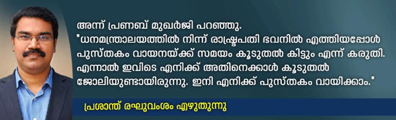 അന്ന് പ്രണബ് മുഖര്ജി പറഞ്ഞു. ''ധനമന്ത്രാലയത്തില് നിന്ന് രാഷ്ട്രപതി ഭവനില് എത്തിയപ്പോള് പുസ്തകം വായനയ്ക്ക് സമയം കൂടുതല് കിട്ടും എന്ന് കരുതി. എന്നാല് ഇവിടെ എനിക്ക് അതിനെക്കാള് കൂടുതല് ജോലിയുണ്ടായിരുന്നു. ഇനി എനിക്ക് പുസ്തകം വായിക്കാം.'' ചരിത്രവും ചട്ടങ്ങളും ഒരു പോലെ അറിയാവുന്ന, മാധ്യമങ്ങളെ ജനാധിപത്യ വ്യവസ്ഥയുടെ ഭാഗമായി കണ്ട രാഷ്ട്രതന്ത്രജ്ഞരില് ഒരാള് കൂടി വിടവാങ്ങുന്നു.
