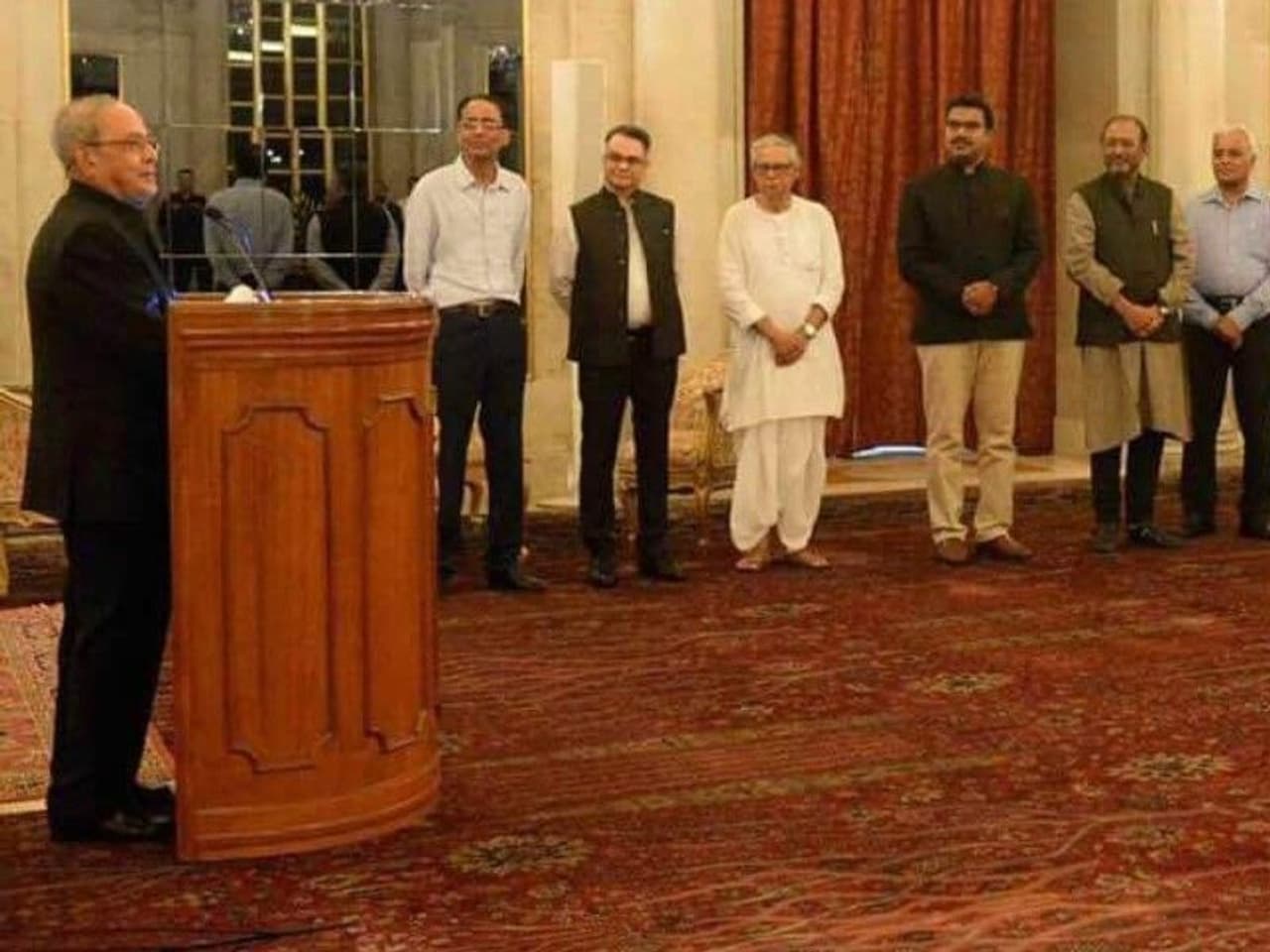 രാഷ്ട്രപതി ഭവനില് നിന്ന് മാറുന്നതിന് ഒരാഴ്ച മുമ്പ് രാഷ്ട്രപതി ഭവനില് നടത്തിയ വിരുന്നില് ഏഷ്യാനെറ്റ് ന്യൂസിനും ക്ഷണമുണ്ടായിരുന്നു. അന്ന് ഏഴുപത്തഞ്ചോളം മാധ്യമപ്രവര്ത്തകരെ പ്രണബ് മുഖര്ജി വിളിച്ചിരുന്നു. രാഷ്ട്രപതിഭവനിലെ സ്റ്റേറ്റ് ഡൈനിംഗ് ഹാള് എന്നറിയപ്പെടുന്ന സല്ക്കാര ഹാളിലായിരുന്നു അന്ന് ഭക്ഷണം ഒരുക്കിയിരുന്നത്. മുന് രാഷ്ട്രപതിമാരുടെ ചിത്രങ്ങളുള്ള മുഗള് ഉദ്യാനത്തിന് ഓരത്തുള്ള ഈ ഹാളിലാണ് സാധാരണ വിദേശ അതിഥികളുടെ സല്ക്കാരം നടക്കുന്നത്.