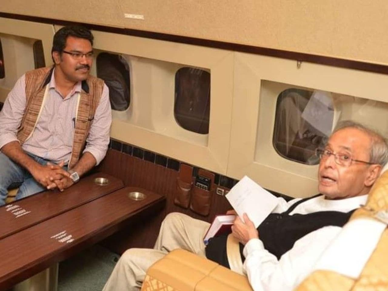 സാധാരണ യാത്ര കഴിഞ്ഞ് തിരിച്ചു വരുമ്പോള് പ്രണബ് ഇന്ത്യയുടെ എയര്ഫോഴ് വണ് വിമാനത്തിലെ കാബിനില് മാധ്യമപ്രവര്ത്തകരെ കാണാറുണ്ട്. ഒരു ചെറിയ യോഗം നടത്താനുള്ള കസേരകള് രാഷ്ട്രപതിയുടെ കാബിനില് ഉണ്ട്. കേരളത്തില് നിന്ന് രണ്ടു തവണ തിരികെ വന്നപ്പോഴും കാബിനില് അദ്ദേഹം ഇരുപത് മിനിറ്റോളം മാധ്യമപ്രവര്ത്തകരുമായി സംസാരിച്ചിരുന്നു. ഉമ്മന്ചാണ്ടി സര്ക്കാരിന് ഒരു മാസം ബാക്കിയുള്ളപ്പോഴായിരുന്നു 2016-ലെ യാത്ര. കേരളത്തിലെ മാധ്യമപ്രവര്ത്തകരും ഉണ്ടെങ്കിലും എന്താണ് കേരളത്തിലെ രാഷ്ട്രീയ കാലാവസ്ഥയെന്ന് പ്രണബ് ചോദിച്ചില്ല. എല്ലാവരും പറയുന്നത് കേട്ടു കൊണ്ടിരുന്നു. തിരിച്ച് ഒരു രാഷ്ട്രീയവും സംസാരിച്ചില്ല.