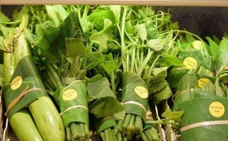 പ്ലാസ്റ്റിക്കിനു പകരം വാഴയില: തായ്ലന്ഡിലെ റിംപിങ് സൂപ്പര്മാര്ക്കറ്റിലടക്കം പ്ലാസ്റ്റിക് ബാഗുകള്ക്ക് പകരം പച്ചക്കറികളും മറ്റും പൊതിഞ്ഞുനല്കാന് വാഴയിലകളുപയോഗിക്കുന്നു.