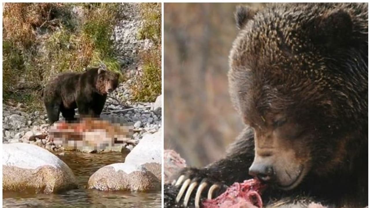 മനുഷ്യരെ കണ്ടപ്പോൾ തന്റെ ഇര നഷ്ടപ്പെടുമോ എന്ന ഭയമാണ് ആ തള്ളക്കരടിയുടെ മുഖത്ത് കണ്ടത്.
