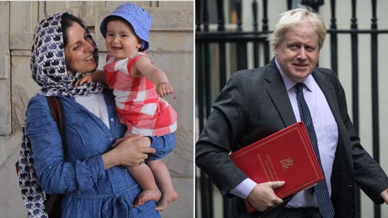 പക്ഷേ, 2017 -ൽ ബ്രിട്ടീഷ് പാർലമെന്റിൽ നടത്തിയ ഒരു സംവാദത്തിൽ 'നാസ്നിന് ഇറാനിലെ ജേർണലിസ്റ്റുകളെ പരിശീലിപ്പിച്ചിരുന്ന'തായി ജോൺസൺ പറഞ്ഞിരുന്നു. അത് നാസ്നിനെ പ്രതികൂലമായി ബാധിച്ചു. അതിൽ പിടിച്ചുതൂങ്ങി ഇറാൻ ആക്രമണം തുടങ്ങിയതോടെ ലണ്ടനിലെ ഇറാൻ സ്ഥാനപതിയെ വിളിച്ചുവരുത്തി കാര്യങ്ങൾ വിശദീകരിക്കേണ്ട ഗതികേടുവന്നു ബ്രിട്ടന്. പിന്നീട് ജോൺസൺ ആ പ്രസ്താവനയെപ്പറ്റി പറഞ്ഞത് തനിക്കു സംഭവിച്ച ഒരു 'നാക്കുപിഴ' എന്നായിരുന്നു.