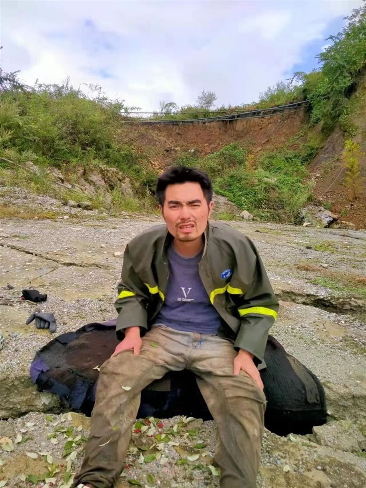 സെപ്തംബര് അഞ്ചിനാണ് സിചുവാനില് റിക്ടര് സ്കെയില് 6.8 തീവ്രത രേഖപ്പെടുത്തിയ ഭൂചലനം ഉണ്ടായത്. ഈ ഭൂകമ്പത്തെ തുടര്ന്ന് തൊട്ടടുത്തുള്ള ജലവൈദ്യുത നിലയത്തിലെ ജീവനക്കാരെല്ലാം രക്ഷപ്പെട്ടു. എന്നാല്, പ്രളയജലം വരുമ്പോള് തൊട്ടടുത്തുള്ള ഗ്രാമങ്ങള് മുങ്ങിപ്പോവുമെന്ന ഭയം കാരണം രണ്ട് ജീവനക്കാര് മാത്രം അവിടെ നിന്നു. പ്രളയം ജലം വന്നാല് ഒഴുകിപ്പോവുന്നതിനായി അവര് ഡാമിനു മുകളിലുള്ള രണ്ട് ഗേറ്റുകള് തുറന്നിട്ടു. എന്നാല്, കൊടും കാടിനോട് ചേര്ന്നുള്ള വിജന പ്രദേശത്തുള്ള ഡാം സൈറ്റില്നിന്നും രക്ഷപ്പെടാന് അവര്ക്ക് കഴിഞ്ഞില്ല. അവര് രാത്രി അവിടെ തങ്ങി. പിറ്റേന്ന് അവര് പുറത്തുകടന്ന് രക്ഷപ്പെടാന് നോക്കി. എന്നാല് കാഴ്ച പ്രശ്നമുള്ളതിനാല് ഒരാള്ക്ക് നടക്കാനായില്ല. അയാളെ അവിടെ നിര്ത്തി രക്ഷാപ്രവര്ത്തകരെ അറിയിക്കാന് പോയ സഹപ്രവര്ത്തകന് പിന്നീട് മറ്റേയാളെ കണ്ടെത്താനായില്ല. തുടര്ന്ന്, കാണാതായ ജീവനക്കാരനായി രക്ഷാ പ്രവര്ത്തനം നടക്കുകയായിരുന്നു. അതിനിടെയാണ് 17- ദിവസത്തിനു ശേഷം ഇയാളെ കാട്ടിനുള്ളില് വീണു കിടക്കുന്ന നിലയില് കെണ്ടത്തിയത്. ഇയാളെ രക്ഷപ്പെടുത്തി ഹോസ്പിറ്റലില് എത്തിച്ചു.