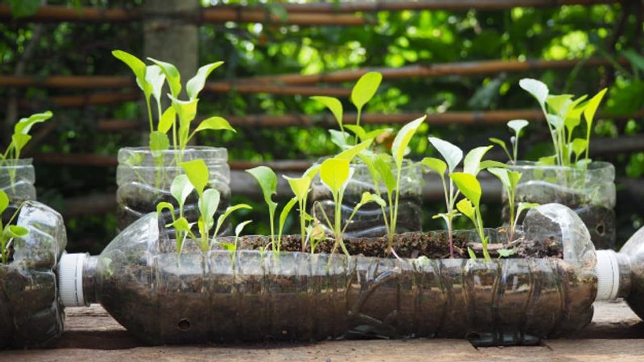 പ്ലാസ്റ്റിക് ബോട്ടിലും ചെടികളും