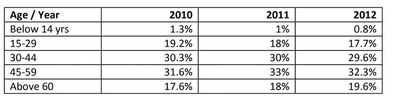 പെട്ടെന്നൊരു മോർച്ചറി കണക്ക് എടുത്തു നോക്കിയാൽ (pic) ഏതാണ്ട് 80 ശതമാനം സ്വയഹത്യകളും നടക്കുന്നത് 20 -നും 60 -നും വയസ്സുകൾക്കിടയിലാണ് എന്ന് കാണാൻ പറ്റും. 15 വയസ്സിന് താഴെയും 75 വയസ്സിനു മുകളില് പ്രായമുള്ളവരിലെ കണക്ക് വളരെ കുറവാണ്. 60 വയസ്സിന് മേലോട്ട് കുറവാണെങ്കിലും 80 -ഉം 90 -ഉം ഒക്കെ വയസ്സ് കഴിഞ്ഞവരുടെ സ്വയഹത്യകൾ നന്നേ കുറവായിരുന്നു എന്ന് തന്നെ പറയാം.