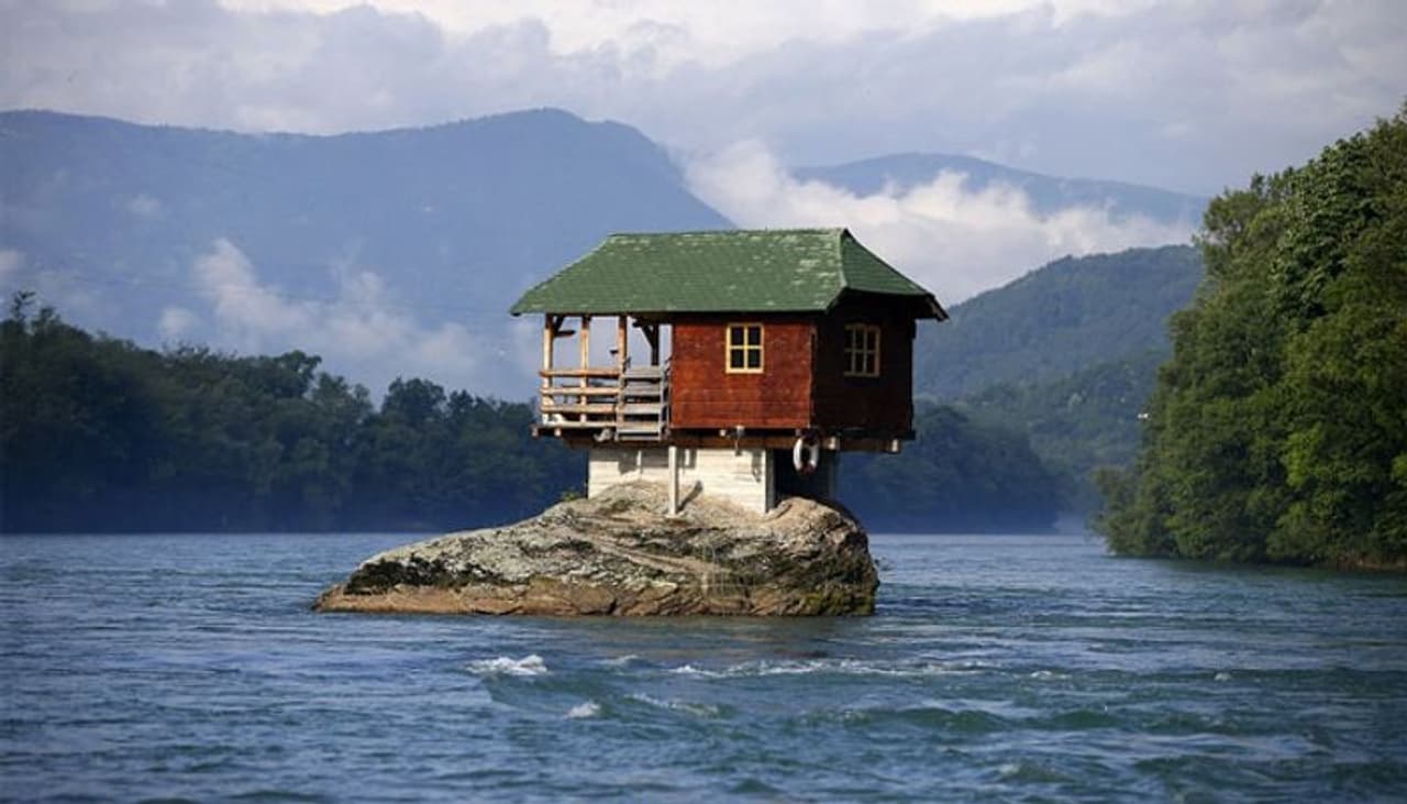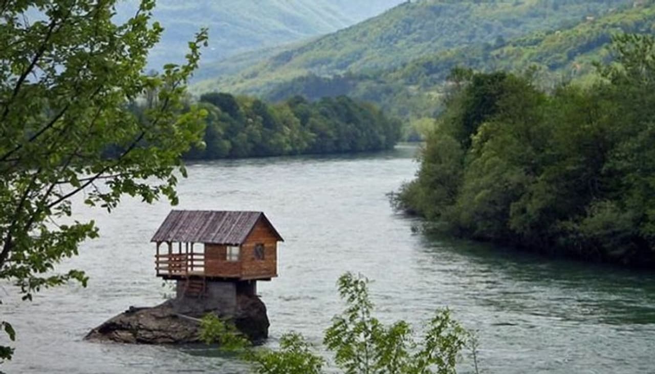 സെര്ബിയയിലെ ബജിന ബാസ്റ്റയിലെ ഡ്രിന നദിയിലാണ് ആ കുഞ്ഞുവീട്... ഒച്ചയുണ്ടാക്കിയൊഴുകുന്നൊരു നദിക്കകത്ത്, ചുറ്റും കാടും പച്ചപ്പും കിളികളും... ആരേയും ആകര്ഷിക്കുന്ന അതിമനോഹരമായ ഈ വീടുണ്ടായ കഥ തന്നെ ഒരല്പം നൊസ്റ്റാള്ജിക് ആണ്. 1968 ല് നീന്താനെത്തിയ കുറച്ചുപേരാണ് ഈ വീടിന്റെ പിറവിക്ക് പിന്നില്. സൂര്യപ്രകാശമേറ്റിരിക്കാന് ഒരു സ്ഥലം തിരഞ്ഞെത്തിയപ്പോഴാണ് നദിക്കകത്ത് ഒരു കല്ല് തലയുയര്ത്തി നില്ക്കുന്നത് കണ്ടത്. ഒരു താല്ക്കാലികവീട് കെട്ടിയുണ്ടാക്കാന് പറ്റിയ ഇടമെന്ന് തോന്നിയത് അവര്ക്കാണ്. അങ്ങനെയുണ്ടായാല് അവിടെ തണലിലൊരല്പം വിശ്രമിക്കണമെന്ന് തോന്നിയാലും ആവാം.