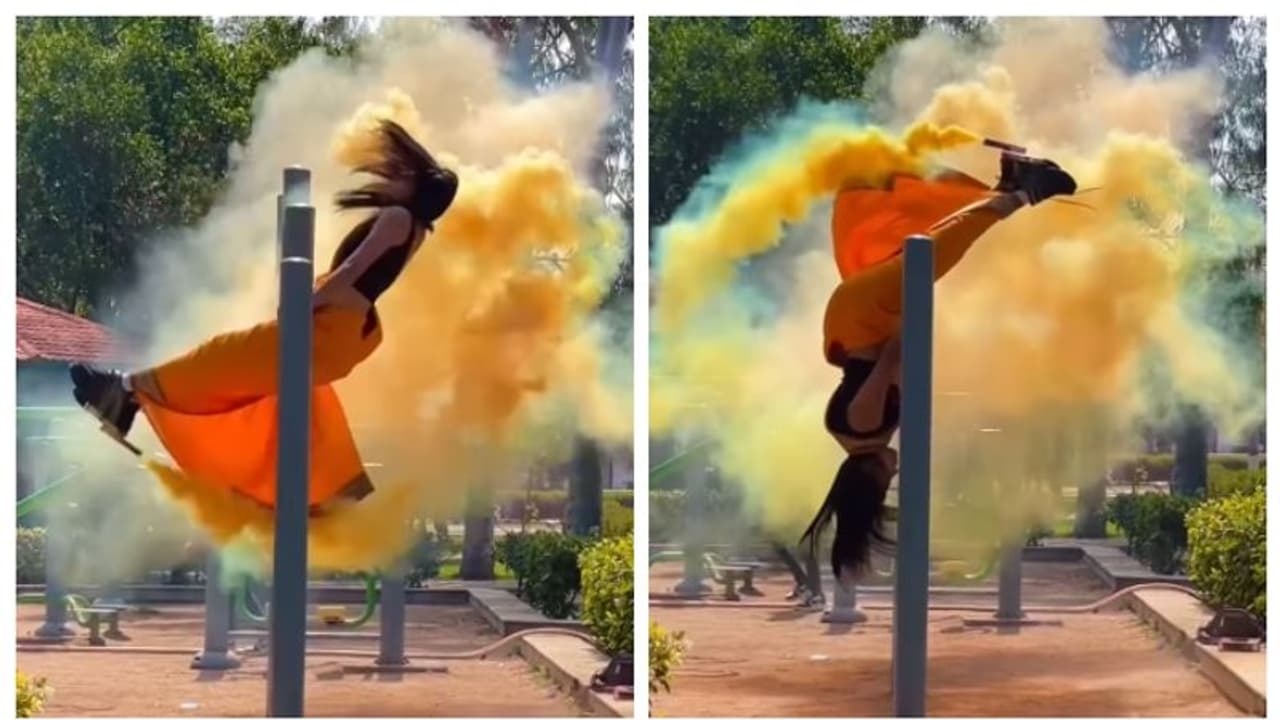 വീഡിയോയുടെ തുടക്കത്തില് സാരി ഉടുത്ത ഒരു യുവതി സോമർസോൾട്ട് ചെയ്യാനായി ഒരു കമ്പിയില് പിടിച്ച് നില്ക്കുന്നു. ഇതിനിടെ കൂടെയുള്ള ഒരു സഹായി വന്ന് യുവതിയുടെ ഷൂവില് ഘടിപ്പിച്ച ഹോളി പടക്കത്തിന് തീ കൊടുക്കുന്നു. പെണ്കുട്ടി ഒരു കറക്കം കറങ്ങുമ്പോള് അതിനനുസരിച്ച് പടക്കത്തില് നിന്നുള്ള മഞ്ഞ പുകയും വ്യാപിക്കുന്നു. പക്ഷേ. ഭയന്ന് പോയ യുവതി ചാടി ഇറങ്ങുകയും പടക്കം കെടുത്താനായി ശ്രമിക്കുന്നു. ഇതിനിടെ യുവതിയുടെ കൂടെയുള്ള യുവാക്കള് ഓടിക്കൂടുകയും പടക്കം കൊടുത്താനായി ശ്രമിക്കുമ്പോള് വീഡിയോ അവസാനിക്കുന്നു. വീഡിയോ വളരെ പെട്ടെന്ന് തന്നെ വൈറലായി ഇതിനകം ഏതാണ്ട് രണ്ട് കോടിയോളം പേര് വീഡിയോ കണ്ടപ്പോള് രണ്ട് ലക്ഷത്തോളം പേര് വീഡിയോയ്ക്ക് ലൈക്ക് ചെയ്തു. നിരവധി ആളുകള് ചിരിക്കുന്ന ഇമോജി കൊണ്ട് കമന്റ് ബോക്സ് നിറച്ചു.