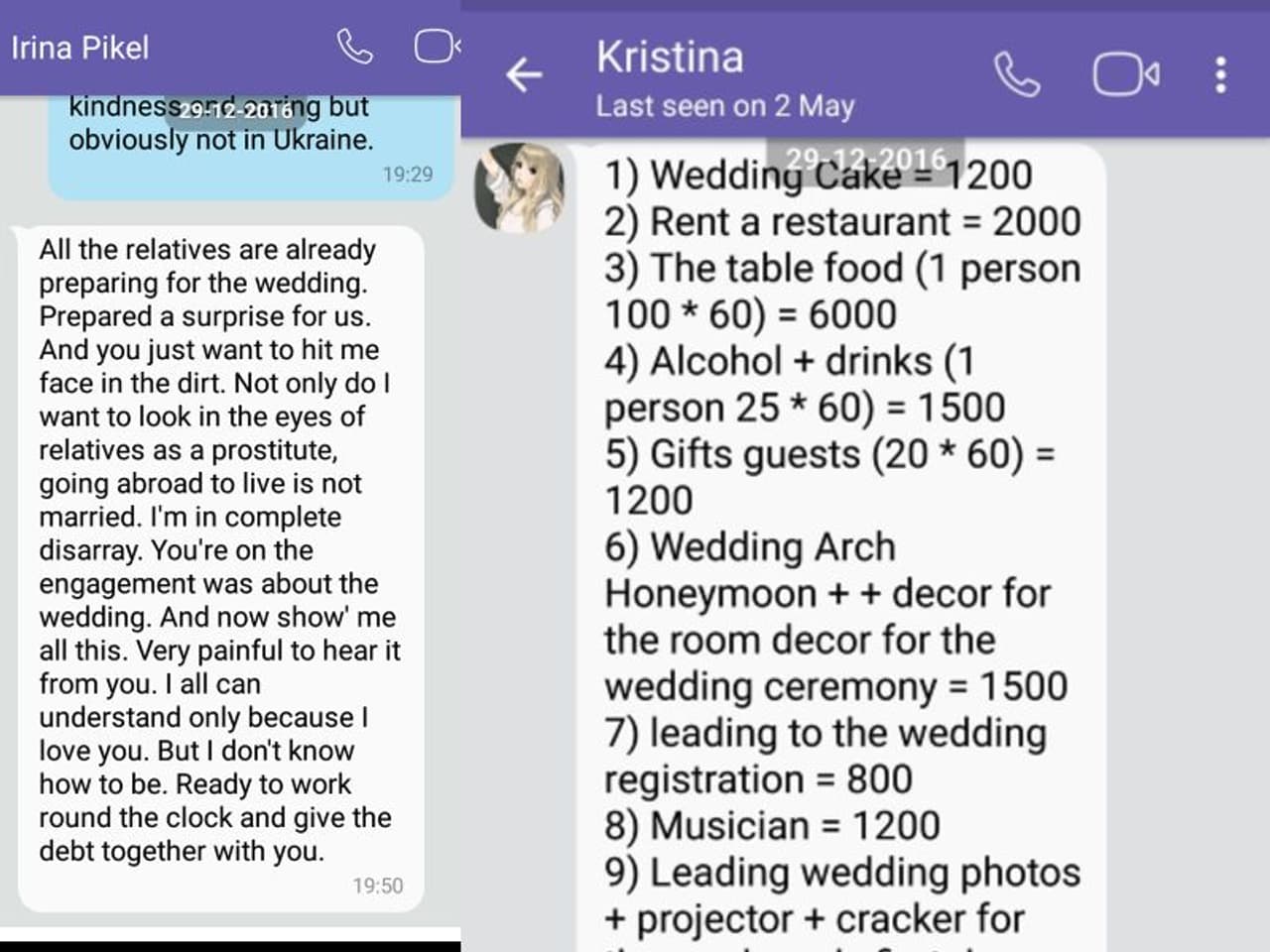 ഐറിനയും ക്രിസ്റ്റീനയും അയച്ച മെസേജുകള്
