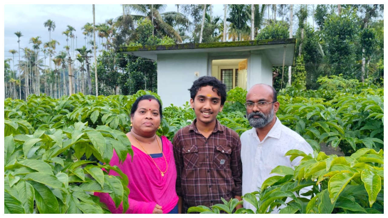 കൃഷി ചെയ്യാന് മനസ് മാത്രമുണ്ടായാല് മണ്ണൊരുങ്ങുമെന്ന് പറഞ്ഞ പോലെയാണ് നമ്പിക്കൊല്ലി കഴമ്പുകുന്ന് നീലകണ്ഠ മന്ദിരത്തില് ധനേഷ് കുമാര് എന്ന അധ്യാപകന്റെയും ഭാര്യ സജിതയുടെയും മകന് പ്ലസ് വണ് വിദ്യാര്ഥി അമൃത് ശങ്കറിന്റെയും കാര്യം. ടെറസില് വ്യത്യസ്ത കൃഷി രീതികള് പരീക്ഷിച്ച് നൂറുമേനി വിളവ് കണ്ടെത്തുന്ന സമര്പ്പണമാണ് മൂവരുടെതും. കെട്ടിട നിര്മാണ സ്ഥലത്ത് നിന്ന് ശേഖരിച്ച കാലി സിമന്റ് ചാക്കും സെറാമിക് റൂഫിങ് ടൈലും മാത്രം വെച്ച് ഇത്തവണ ചേനയാണ് ഇവര് മട്ടുപ്പാവില് നട്ടുവളര്ത്തിയത്. ഇതിന് മുമ്പ് നെല്ലും കാന്താരിയും ചെണ്ടുമല്ലിയും വിളയിച്ച കുടുംബം 'ടെറസ് കൃഷി'യിലും വ്യത്യസ്തത തേടുകയാണ്.
