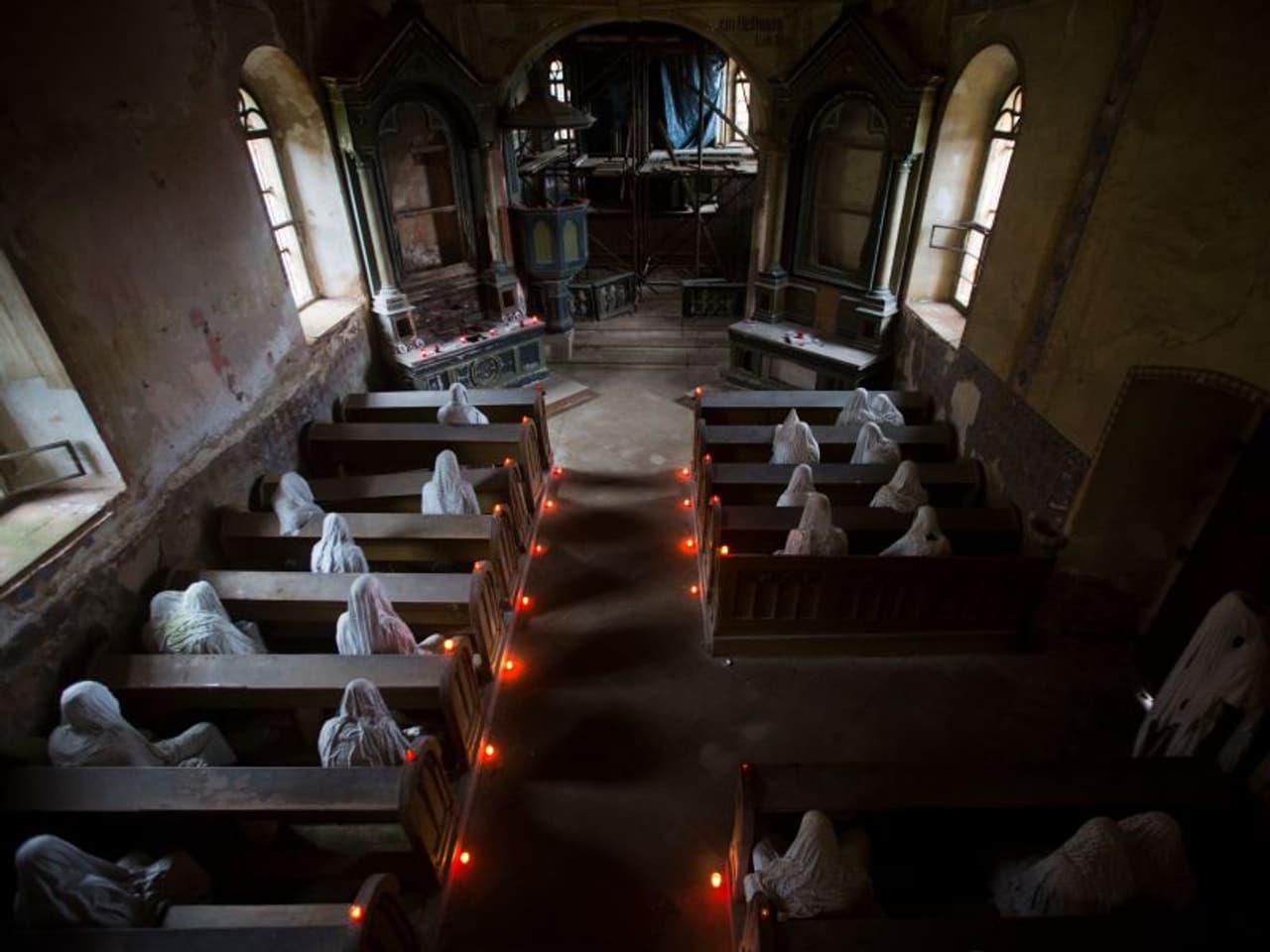 ഉപേക്ഷിക്കപ്പെട്ടതിനെ തുടർന്ന് പള്ളി ജീർണിക്കാൻ തുടങ്ങി. നാട്ടുകാർക്ക് അത് സംരക്ഷിക്കാൻ ആഗ്രഹം ഉണ്ടായിരുന്നുവെങ്കിലും അതിനായുള്ള പണമില്ലായിരുന്നു. വെറും 700 ആളുകളുള്ള ഈ പട്ടണത്തിന് പതിനാലാം നൂറ്റാണ്ട് മുതലുള്ള ഒരു പള്ളി നവീകരിക്കാനുള്ള ധനം കണ്ടെത്താനായില്ല. എന്നാൽ, 2012 -ൽ അവിടെയുള്ള ഒരു കലാകാരന് ഒരു ആശയം തോണി. അങ്ങനെ പ്രേതബാധയുണ്ടെന്ന് പറയപ്പെട്ട അതേ പള്ളിയിൽ ജാക്കുബ് ഹദ്രവ എന്ന കലാകാരൻ 32 'ജീവസ്സുറ്റ പ്രേത'ങ്ങളെ നിർമ്മിച്ചു.