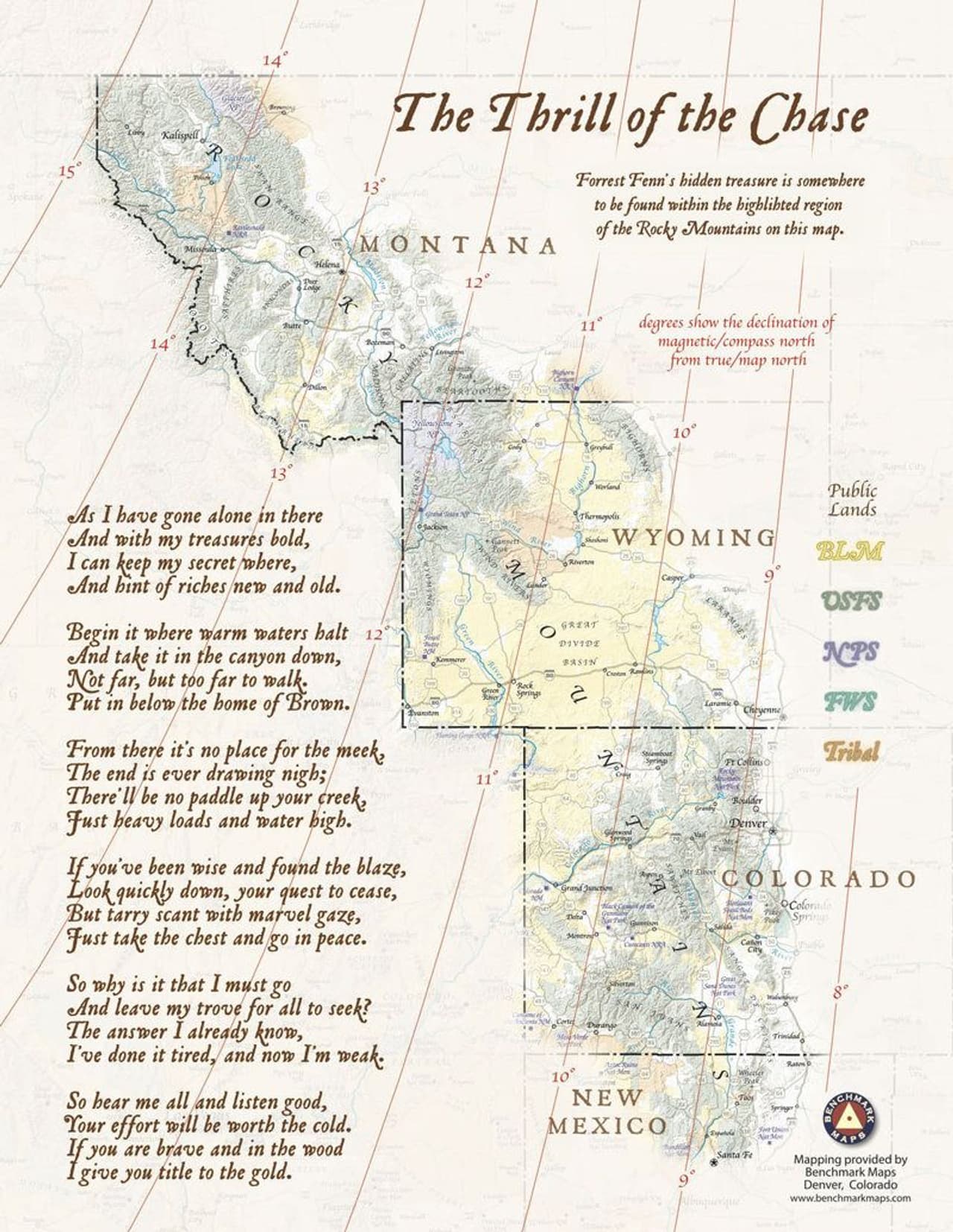 കഴിഞ്ഞ പത്തുവർഷത്തോളമായി അമേരിക്കയിലെ ആയിരക്കണക്കിന് ഭാഗ്യാന്വേഷകർ ഒരു നിധിയും തിരഞ്ഞ് നടപ്പായിരുന്നു. രണ്ടു മില്യൺ ഡോളർ വിലമതിക്കുന്ന, നമ്മുടെ നാട്ടിലെ 15 കോടിയോളം രൂപ വിലമതിക്കുന്ന സ്വർണ്ണക്കട്ടികളും, നാണയങ്ങളും, വജ്രങ്ങളും മറ്റും അടങ്ങിയ ഒരു പെട്ടി. അതായിരുന്നു അവർ തേടിക്കൊണ്ടിരുന്ന നിധി. നോർത്ത് അമേരിക്കയിലെ റോക്കി മലനിരകളിലാണ് ആ ട്രെഷർ ചെസ്റ്റ് ഒളിപ്പിച്ച് വെച്ചിട്ടുണ്ടായിരുന്നത്.