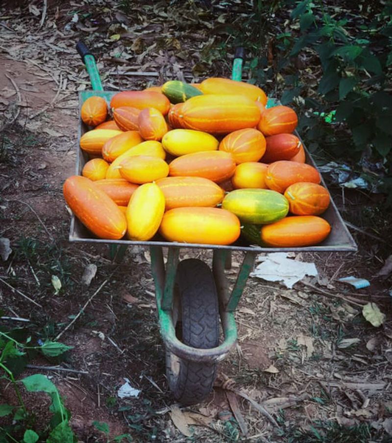അങ്ങനെ, ഏറെ നാളത്തെ കാത്തിരിപ്പില്, സ്ത്രീകളും കുട്ടികളുമടങ്ങുന്ന ഗ്രൂപ്പ് അംഗങ്ങളുടെ സാന്നിധ്യത്തില് പച്ചക്കറികള് വിളവെടുത്തു. ആ വാട്ട്സാപ്പ് ഗ്രൂപ്പ് നിറയെ കണിവെള്ളരിയുടെ ആഹ്ളാദം തുളുമ്പി.