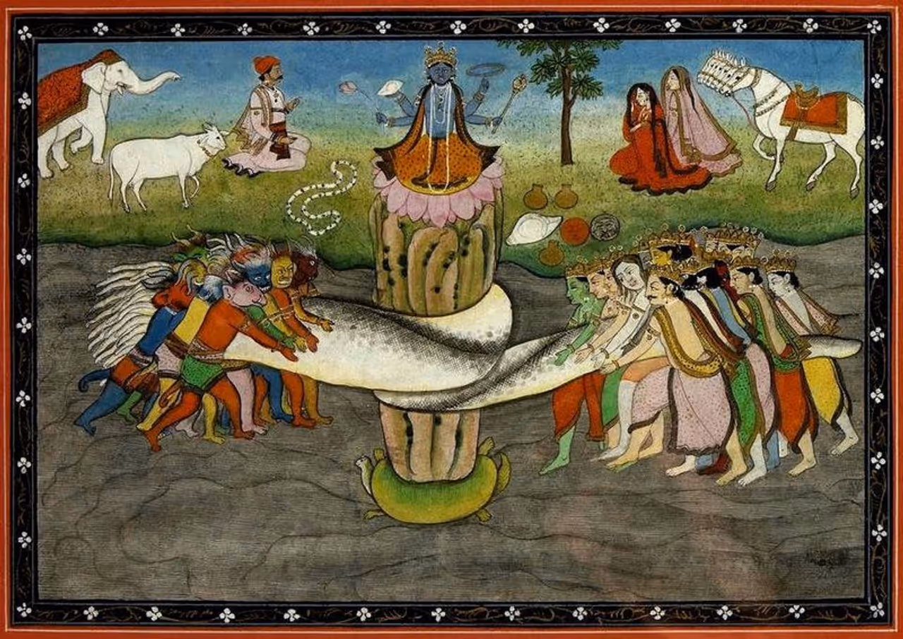 ഭൂമിയെ സർവ നാശത്തിൽ നിന്ന് രക്ഷിക്കാനാവശ്യമുള്ള അമൃതമെടുക്കാൻ വേണ്ടി ദേവന്മാരും അസുരന്മാരും ചേർന്ന് പാലാഴി എന്ന കടൽ കടഞ്ഞുവെന്നാണ് ഹൈന്ദവ പുരാണങ്ങൾ പറയുന്നത്. കടകോലായി മന്ദരപർവ്വതത്തെ ഉപയോഗിച്ച് കയറായ വാസുകിയുടെ തലഭാഗം അസുരന്മാരും, വാൽഭാഗം ദേവന്മാരും പിടിച്ച് കടഞ്ഞപ്പോൾ പാലാഴി മധ്യത്തിൽ നിന്ന് പലതും ഉയർന്നുവന്നു എന്നാണ് പുരാണം. അന്ന് പൊന്തിവന്ന അമൃതം താഴെ വീണാണ് ഭാംഗ് ചെടി ഉണ്ടായത് എന്നാണ് സങ്കൽപം. അഥർവ വേദത്തിലും മാനസിക സമ്മർദ്ദം കുറയ്ക്കാനുളള ഉപാധിയായി ഭാംഗിനെപ്പറ്റിയുള്ള പരാമർശമുണ്ട്. അതിന് ശിവമൂലികാധൂളിയെന്നൊരു പേരുകൂടി കൈവന്നിരുന്നു. ഇന്നും ശിവരാത്രി ദിവസം ഉത്തരേന്ത്യയിലെ പല ക്ഷേത്രങ്ങളിലും ഭാംഗ് പ്രസാദമായി നല്കപ്പെടുന്നുണ്ട്.