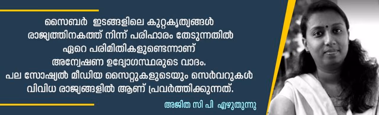 ഇതെല്ലാം ഉണ്ടെങ്കിലും നിയമഭേദഗതിയിലെ മെല്ലെപ്പോക്ക് പരാമര്ശിക്കാതിരിക്കാനും കഴിയില്ല. നമുക്കൊരു ഐടി ആക്ട് ഉണ്ടാകുന്നത്. രണ്ടായിരത്തിലാണ്. 2008- ല് ആണ് അതിനൊരു ഭേദഗതി വരുന്നത്. അപ്പോള് നമ്മള് ഓര്ക്കുട്ട് കാലത്താണ്. ഫേസ്ബുക്കും ഇന്സ്റ്റയും ട്വിറ്ററും എല്ലാം കടന്ന് ക്രിപ്റ്റോ കറന്സിയിലും ആര്ട്ടിഫിഷ്യല് ഇന്റലിജന്സിലും വരെ സാങ്കേതികത ചെന്ന് നിന്നിട്ടും കാലമേറെയായി. ചുരുക്കി പറഞ്ഞാല് ഒരു സൈബര് കുറ്റകൃത്യം നടക്കുമ്പോള് അതിനെതിരെ നട്ടെല്ല് നിവര്ത്തി നില്ക്കാന് പോയിട്ട് നല്ലപോലൊന്ന് കണ്ണുരുട്ടിക്കാണിക്കണമെങ്കില് പോലും നമ്മുടെ നീതിന്യായ സംവിധാനത്തിന് ഒട്ടേറെ പരിമിതി ഉണ്ടെന്ന് ചുരുക്കം.