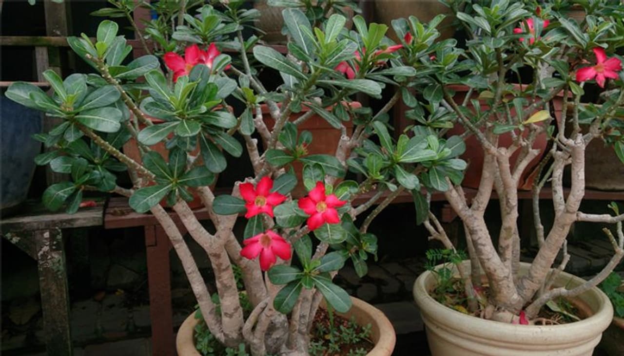 ബോണ്സായ് രൂപത്തില് വളര്ത്തുമ്പോള് ഒന്നില്ക്കൂടുതല് ചെടികള് ഒരുമിച്ച് വളര്ത്തി തണ്ടുകള് പിണച്ചെടുക്കുകയാണ് ചെയ്യുന്നത്. അഡീനിയത്തിന്റെ തണ്ടില് വെള്ളം ശേഖരിച്ചുവെക്കാന് കഴിവുണ്ട്.