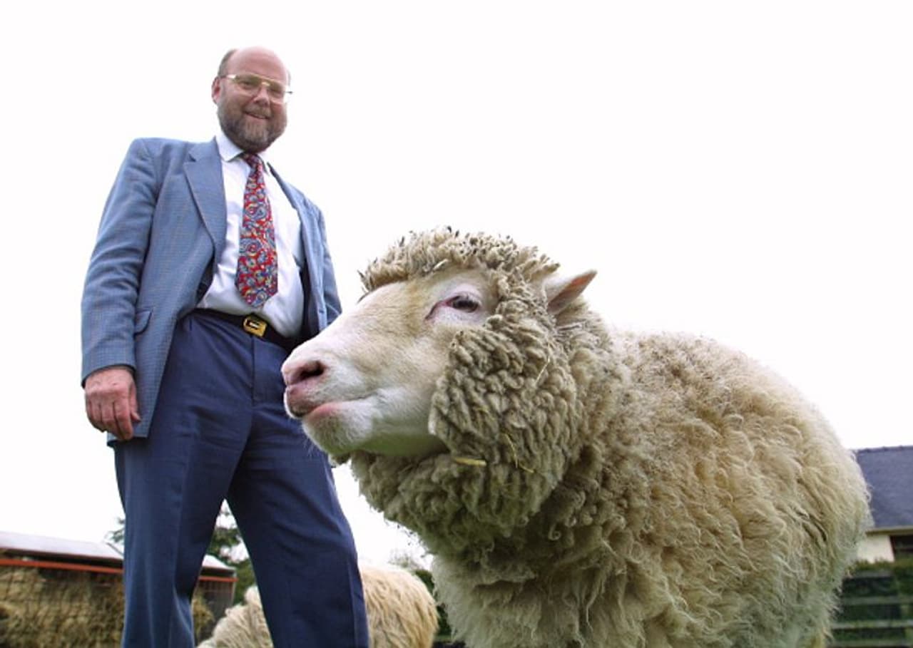 (ലോകത്തിലെ ആദ്യത്തെ ക്ലോണിംഗ് ആടായ ഡോളിയോടൊപ്പം പ്രൊഫസർ ഇയാന് വിൽമുട്ട്. ഫോട്ടോ കോളിൻ മക്ഫെർസൺ/കോർബിസ് / ഗെറ്റി)
