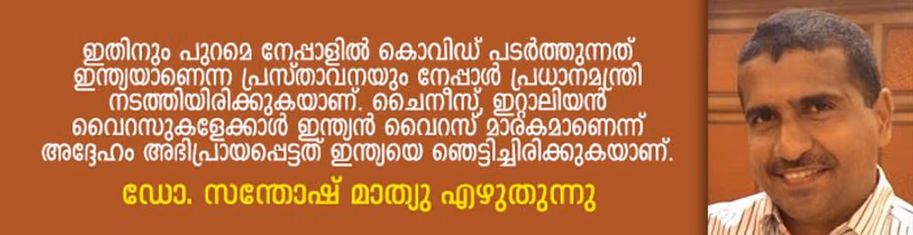 ഇതിനും പുറമെ നേപ്പാളിൽ കൊവിഡ് പടർത്തുന്നത് ഇന്ത്യയാണെന്ന പ്രസ്താവനയും നേപ്പാൾ പ്രധാനമന്ത്രി നടത്തിയിരിക്കുകയാണ്. ചൈനീസ്, ഇറ്റാലിയൻ വൈറസുകളേക്കാൾ ഇന്ത്യൻ വൈറസ് മാരകമാണെന്ന് അദ്ദേഹം അഭിപ്രായപ്പെട്ടത് ഇന്ത്യയെ ഞെട്ടിച്ചിരിക്കുകയാണ്. 'ഇന്ത്യയിൽ നിന്ന് നിയമവിരുദ്ധ മാർഗങ്ങള് വഴി രാജ്യത്തേക്കു കടക്കുന്നവരിലൂടെ വൈറസ് പടരുന്നുണ്ട്. ശരിയായ പരിശോധനയില്ലാതെ ഇന്ത്യയിൽ നിന്ന് ആളുകളെ എത്തിക്കുന്നതിൽ ചില പ്രാദേശിക പ്രതിനിധികൾക്കും പാർട്ടി നേതാക്കൾക്കും ഉത്തരവാദിത്തമുണ്ട് എന്നാണ് നേപ്പാൾ പ്രധാനമന്ത്രി പാർലമെന്റിൽ പറഞ്ഞത്. എന്നാൽ, അദ്ദേഹം വിസ്മരിച്ച ഒരു കാര്യമുണ്ട്, ഇന്ത്യയിൽ അറുപതുലക്ഷത്തിനുമേൽ നേപ്പാളി അതിഥി തൊഴിലാളികൾ ജോലി ചെയ്യുന്നുണ്ട്!