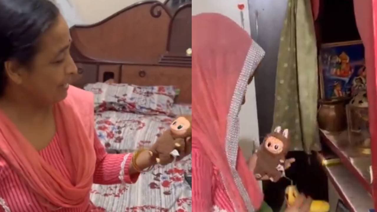 വീഡിയോയിൽ ലബുബു പാവ കയ്യിൽ പിടിച്ചു കൊണ്ടിരിക്കുന്ന അമ്മയോട് അവൾ 'അത് ചൈനീസ് ദൈവമാണെ'ന്ന് പറയുന്നത് വീഡിയോയിൽ കേൾക്കാം.