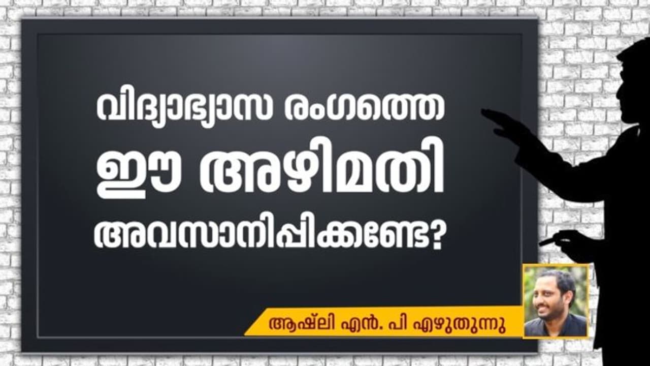ഒരു നാട്ടിലെ വിദ്യാഭ്യാസരംഗം അഴിമതിയിലും പണാധിപത്യത്തിലും മുങ്ങി അതിന്റെ സത്യസന്ധതയും നീതിബോധവും നഷ്ടപ്പെടുത്തുമ്പോൾ നാം കൊന്നു കളയുന്നത് "പഠിച്ചു രക്ഷപ്പെടാം" എന്ന സാമൂഹ്യമാറ്റത്തെക്കുറിച്ചുള്ള പ്രതീക്ഷയെക്കൂടിയാണ് എന്ന് തിരിച്ചറിഞ്ഞു കഴിഞ്ഞാൽ നമുക്ക് മിണ്ടാതിരിക്കാൻ കഴിയുമോ? നമുക്ക് ഇനി വരുന്ന കാലത്തോട് ഒരു ബാധ്യത ഇല്ലേ?
