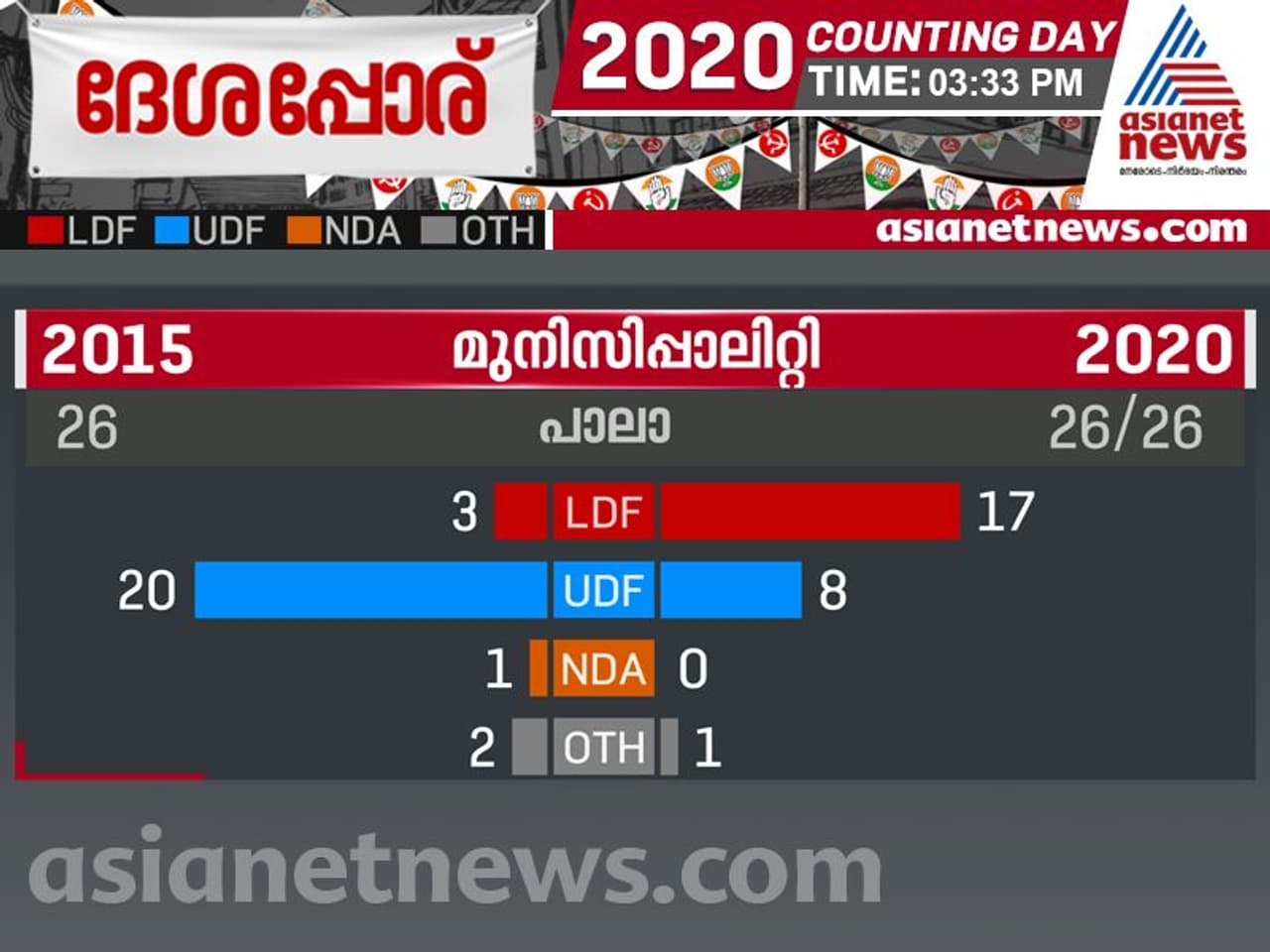 അന്തിമഫലം വന്നപ്പോൾ പാലാ മുനിസിപ്പാലിറ്റിയിലെ സീറ്റുനില ഇങ്ങനെ.