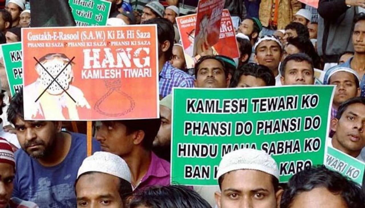 എന്നാൽ, കമലേഷ് തിവാരി ഹിന്ദുമഹാസഭയിൽ നിന്ന് പുറത്താകുന്ന ഒരു സാഹചര്യവും അധികം വൈകാതെ തന്നെ സംജാതമായി. 2015 -ൽ, ആർഎസ്എസുകാരിൽ പലരും സ്വവർഗ്ഗരതിക്കാരായതുകൊണ്ടാണ് അവർ വിവാഹം കഴിക്കാതെ ബ്രഹ്മചാരികളെന്നമട്ടിൽ തുടരുന്നത് എന്ന ആരോപണവുമായി ആസം ഖാൻ മുന്നോട്ടുവന്നപ്പോൾ, അതിനുള്ള മറുപടിയെന്നോണം പ്രവാചകനെതിരെയും അതേ നാണയത്തിൽ ആരോപണങ്ങൾ ഉന്നയിച്ചു കൊണ്ട് കമലേഷ് തിവാരി നടത്തിയ പ്രത്യാക്രമണം, അന്ന് നിരവധി മുസ്ലിങ്ങളെ ചൊടിപ്പിക്കുന്നതിന് ഇടയാക്കി. പ്രകടനവുമായി പതിനായിരങ്ങൾ തെരുവിലിറങ്ങിയിരുന്നു.