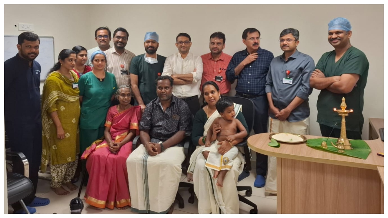 (കാശിനാഥന് അച്ഛന് സുജിത്തിനും അമ്മ അശ്വതിക്കും ചികിത്സിച്ച ഡോക്ടർമാര്ക്കുമൊപ്പം.)
