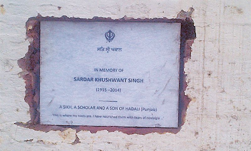 2014 -ല് ഖുഷ്വന്ത് സിങ്ങ് മരണപ്പെട്ടപ്പോള്, പണ്ട് പഠിച്ചിറങ്ങിയ ഹദാലി സ്കൂളില് തന്നെയാണ് അദ്ദേഹത്തെ അടക്കം ചെയ്തത്. അദ്ദേഹത്തിന്റെ ശവകുടീരത്തില് കൊത്തിവെച്ചിരിക്കുന്ന സ്മൃതിലേഖത്തില് ഇങ്ങനെ എഴുതിയിരിക്കുന്നു,